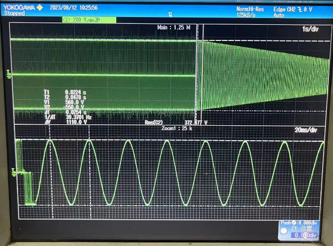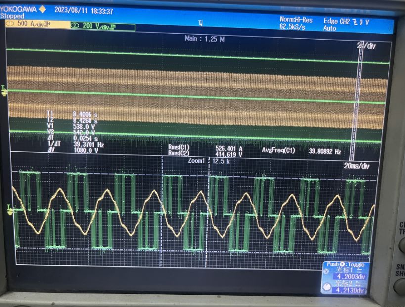 变频器以39.3HZ(157rpm)运行时的电流电压波形