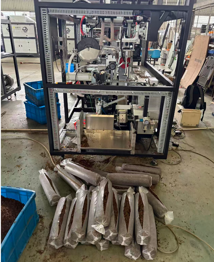 机器的主要功能是将混合、发酵好的蘑菇培养料(蘑菇土)自动、定量地装入塑料袋中,为后续的灭菌、接种环节做准备。它是一个集输送、计量、装填、压实于一体的自动化设备。